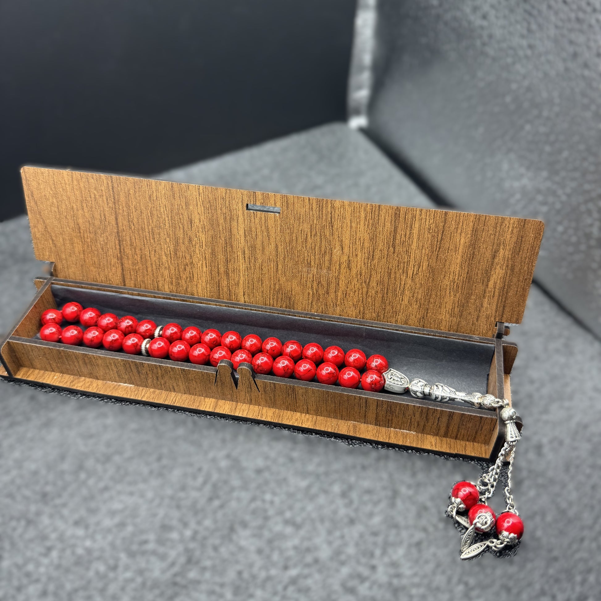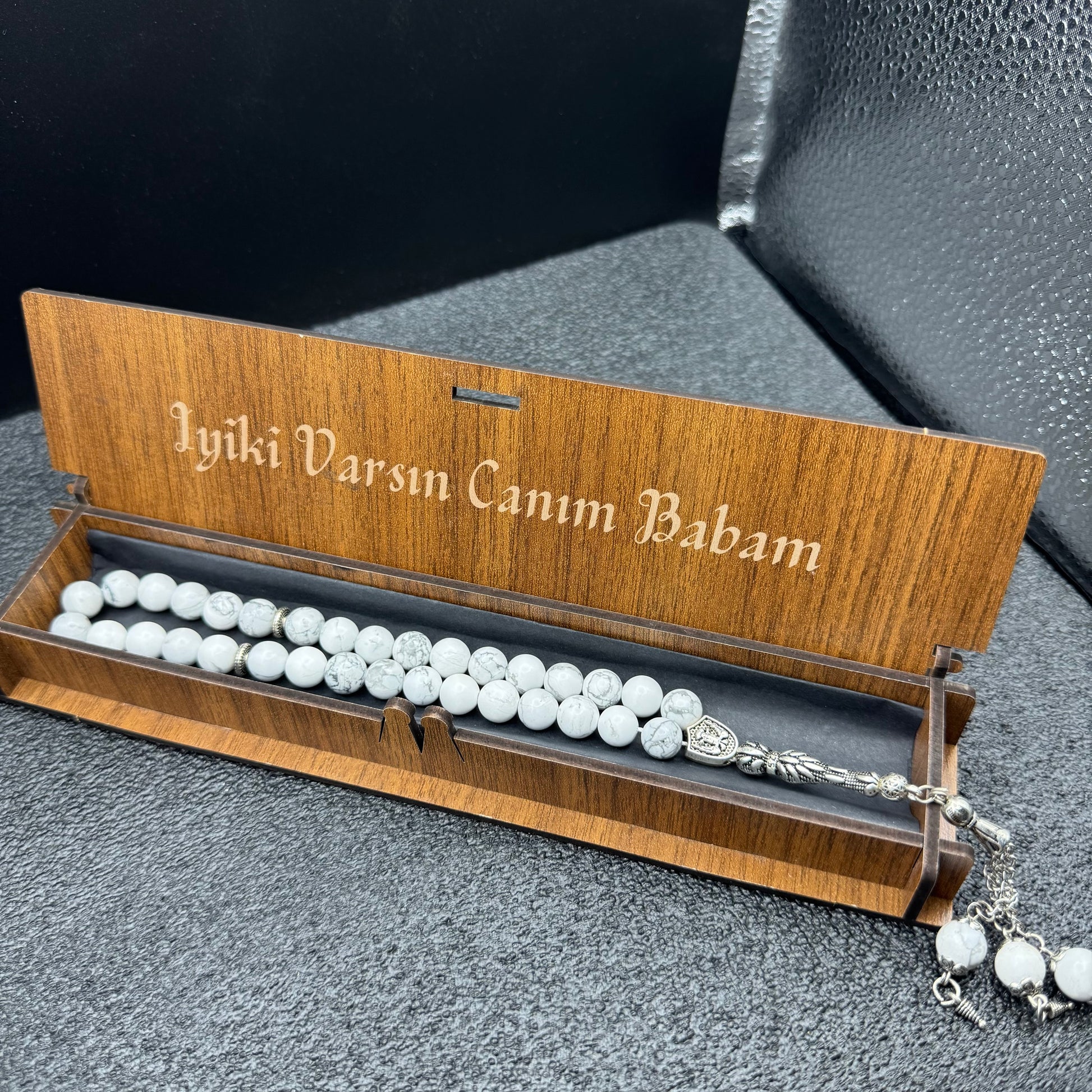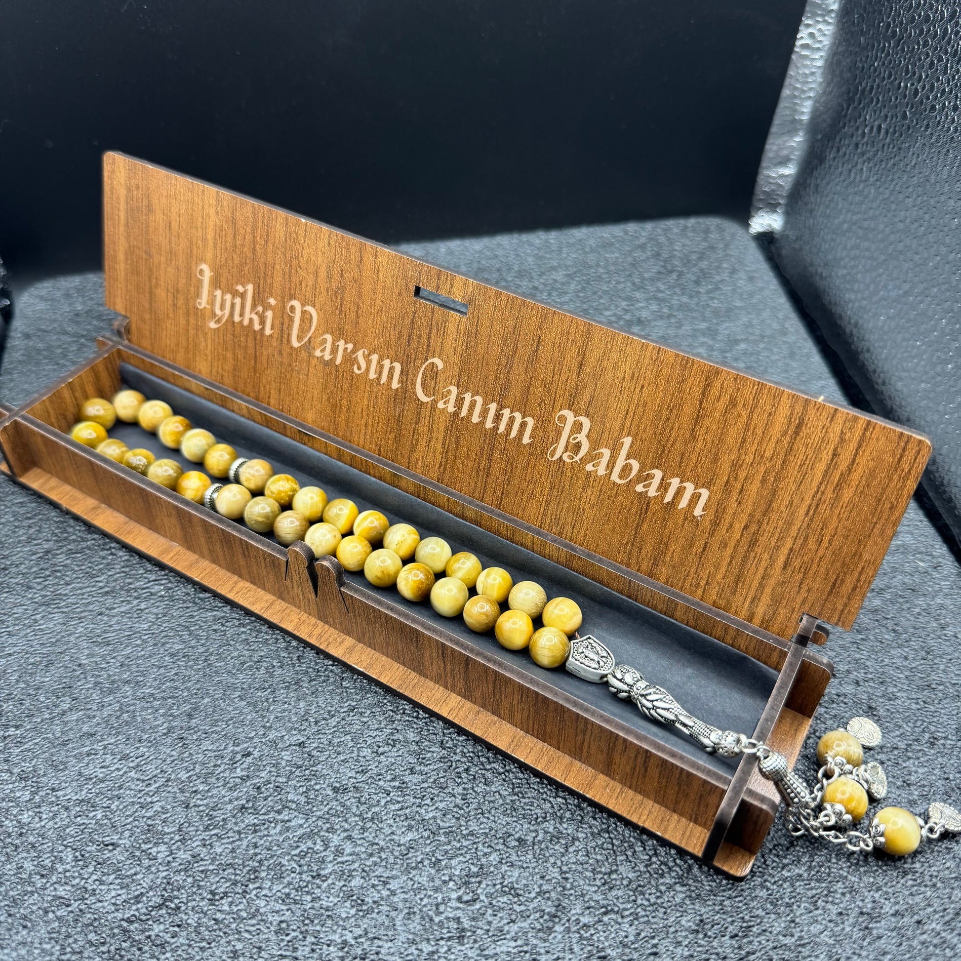 Naturstein Tesbih mit Personalisierbarer Holz-Geschenkbox