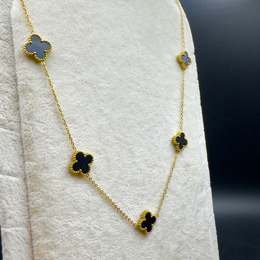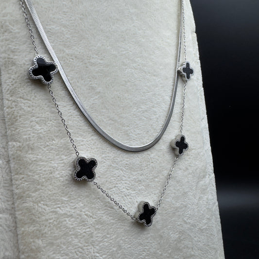 Damen-Doppelhalskette mit Schwarzem Kleeblatt-Anhänger