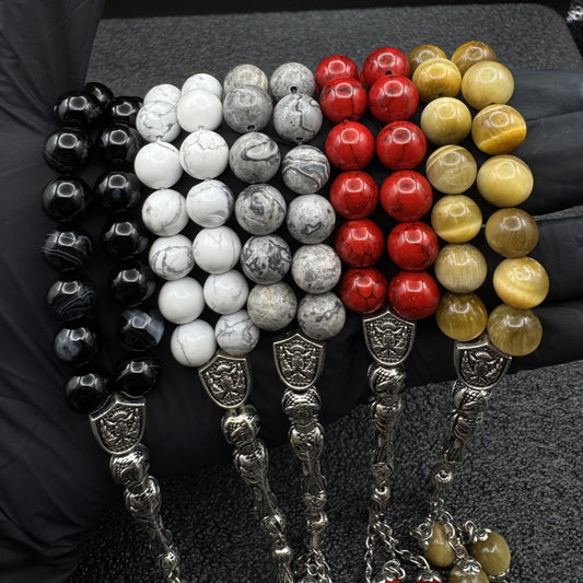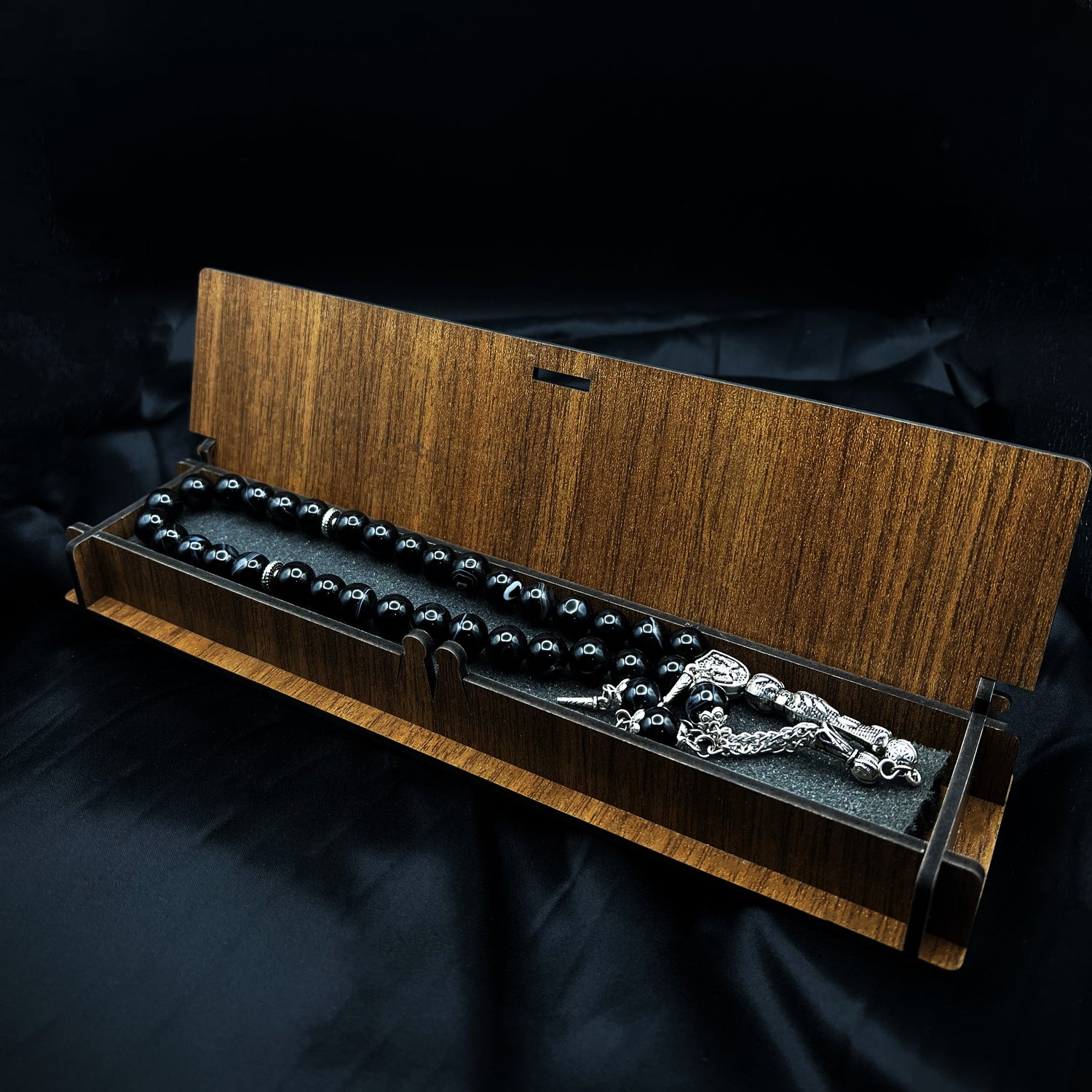 Naturstein Tesbih mit Personalisierbarer Holz-Geschenkbox